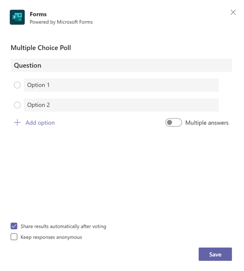 - By default polls are created that allow only one answer. Click on the slider "Multiple answers" if you want to make it possible for people to select any or all responses.